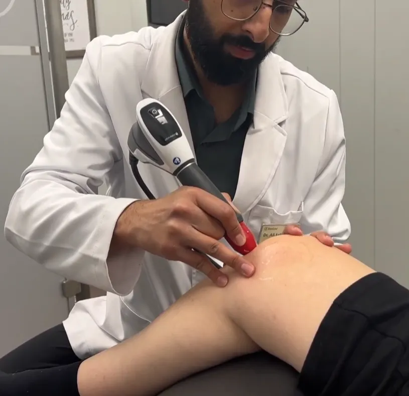 Shockwave therapy sends high-energy sound waves to the area of pain.