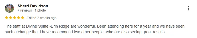 100% Secure. By Submitting, you agree to Divine Spine Erin Ridge's Terms of Use and Privacy Policy. You consent to receive text messages from us at the cell number provided to book your appointment and receive reminders. Message frequency depends on your activity. Reply STOP to opt-out.